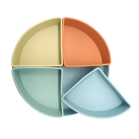 Placa colorida con compartimento de silicona para bebé, vajilla dividida, bandeja para servir aperitivos, juegos de alimentación para niños