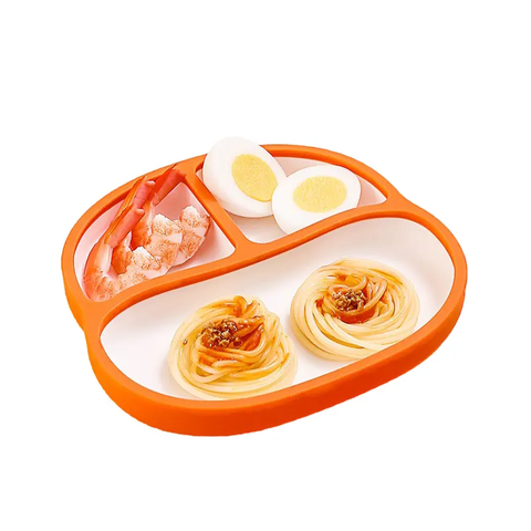 Adorable Placa de succión fuerte para bebé naranja ecológico no tóxico antideslizante juego de alimentación de alimentos vajilla dividida de silicona