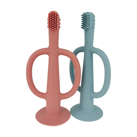 Bebé Niños Entrenamiento Primera Edad Cepillo de dientes de silicona con base de succión Mordedores para roedores