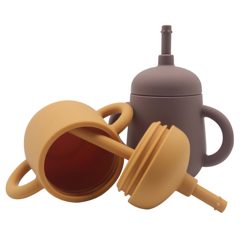 Tazas de silicona coloridas ecológicas con pajita para bebés, niños pequeños, agua potable, taza de entrenamiento para bebés